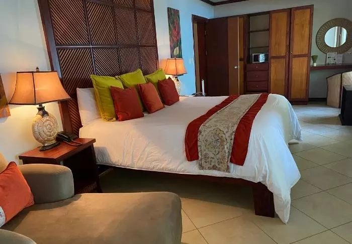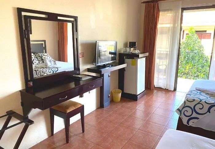 The hotel offers 42 inviting rooms and bungalows, with views of the gardens or the volcano. All rooms are designed with comfort and local character in mind, and come equipped with air conditioning, Wi-Fi, a fridge, a coffee machine, a TV, and a private bathroom. Each room has either a terrace or a balcony.
