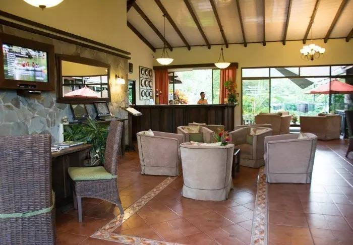 There is also a swimming pool filled with natural spring water from the volcano. There are 54 rooms, each with a small veranda where you can enjoy the view of the volcanoes and the hacienda. All rooms are equipped with air conditioning, safe and TV.