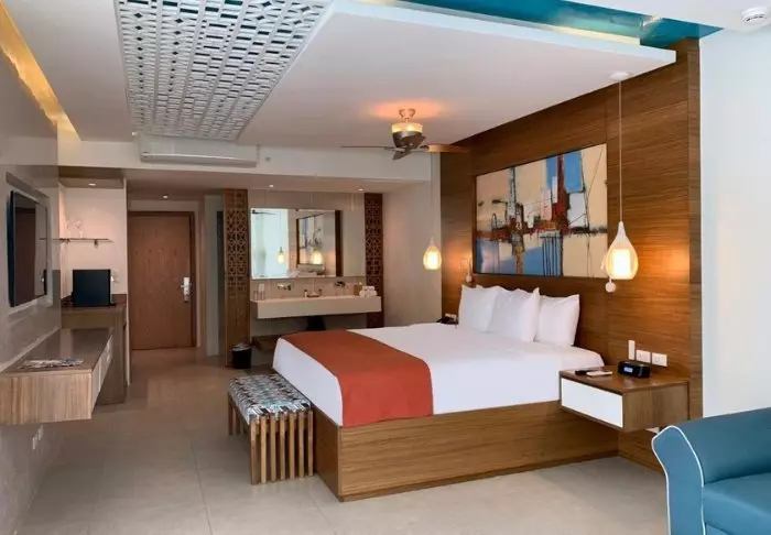 The resort has 130 modern rooms in light colours with beautiful wooden furniture. All rooms offer air conditioning, cable TV, a safe, coffee/tea facilities, a fridge, Wi-Fi and an en suite bathroom.
