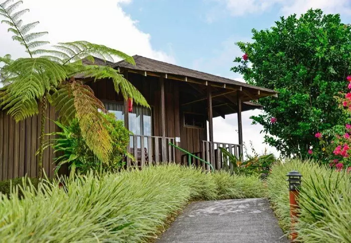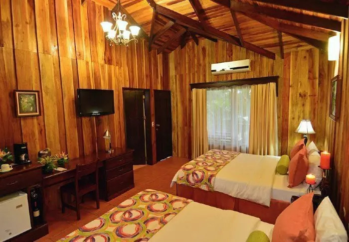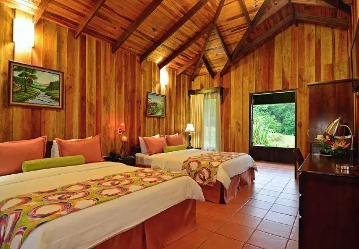 The hotel has 52 charming wooden cabins spread over 150 hectares of grounds. All of them have air conditioning, a telephone, a safe, cable TV, a mini fridge, a coffee maker and Wi-Fi. In addition, all cabins have 2 terraces, one overlooking the Arenal volcano, the other with direct access to the stunning tropical flower garden.