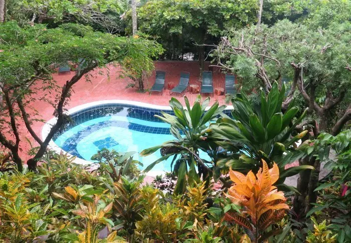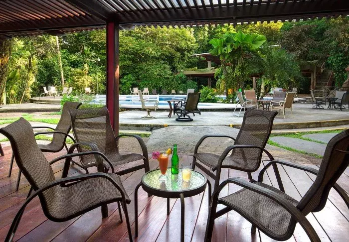 The hotel has a delightful pool area with recliners, perfect for relaxing, enjoying the verdant surroundings and listening to the varied noises of the forest.