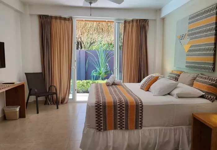 The resort has just 38 rooms decorated in minimalist Costa Rican style and equipped with air conditioning, a ceiling fan, Wi-Fi, a TV, a safe, a coffee maker and an ensuite bathroom with toiletries. Each room also has a cosy little balcony.