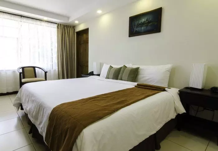 There are two restaurants at the hotel. Tropicana is a buffet restaurant serving both international and local dishes. This is also where breakfast is served (included). The elegant El Mirador restaurant on the 17th floor serves finer international cuisine, which you can enjoy with stunning city views. You can also sit in the lounge chairs and drink a cocktail at the hotel’s own La Palma Bar. Room service is also available.