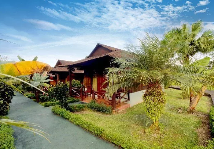 The lodge has 66 bungalows and rooms with a tropical décor, all rustically appointed with wood and bamboo furniture. The rooms have an en suite toilet/shower, a safe and a ceiling fan, and there is free Wi-Fi in the lodge’s communal areas.