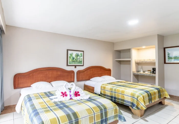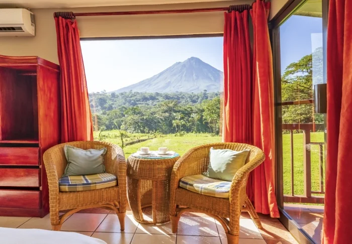 The hotel offers 42 inviting rooms and bungalows, with views of the gardens or the volcano. All rooms are designed with comfort and local character in mind, and come equipped with air conditioning, Wi-Fi, a fridge, a coffee machine, a TV, and a private bathroom. Each room has either a terrace or a balcony.