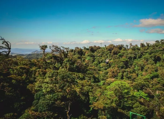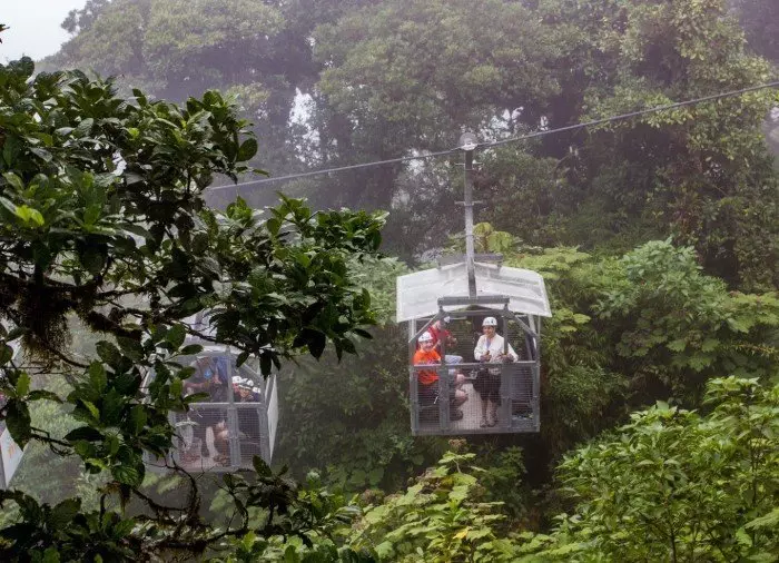 After the hanging bridges, you glide in an open gondola up the hillside and over the tree tops until you reach the highest point of the mountain, where you will be dropped off at a vantage point offering a fantastic view of the magical forest. Then your thrilling ziplining adventure begins!