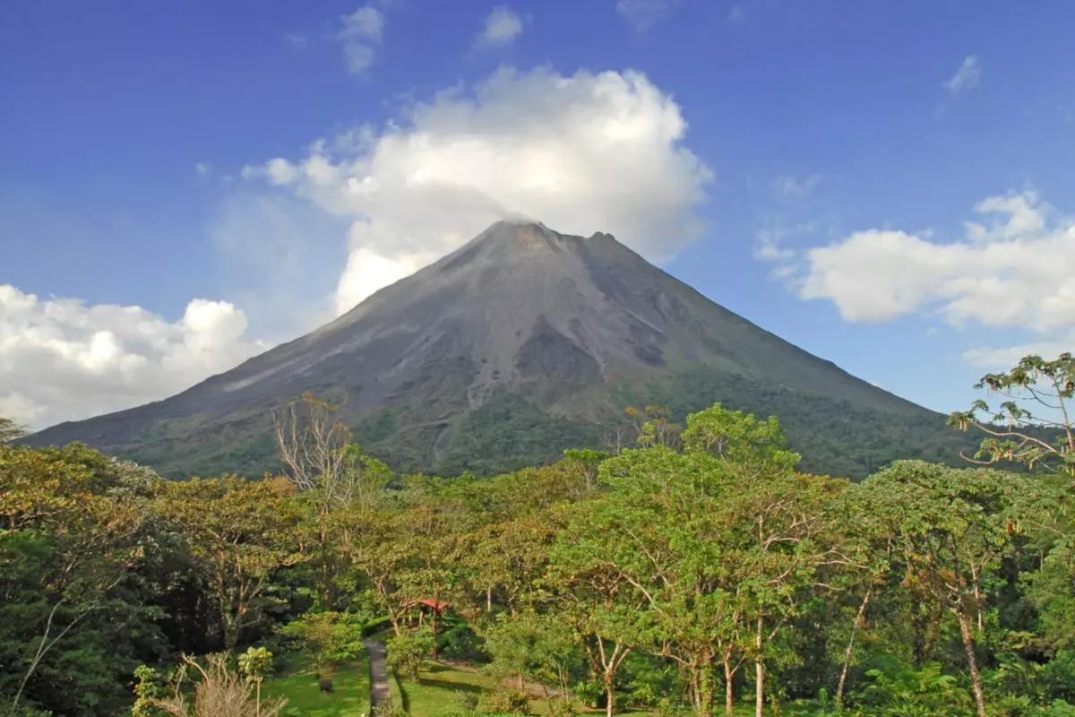 La Fortuna is located at the foot of the beautiful cone-shaped Arenal volcano, which was inactive for more than 400 years until a violent eruption one day in 1968, which caused mass destruction and buried several small villages. However, the volcano has remained calm since 2010 and is described as a dormant volcano that is safe to visit.