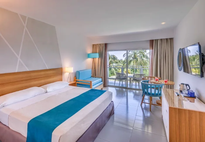 The resort offers modern, spacious rooms with colourful décor. All rooms feature air conditioning, mini-bars, safes, TV, Wi-Fi, and an en suite bathroom with hair dryer. There is also an attached balcony where you can enjoy a quiet moment in the warm tropical breeze.