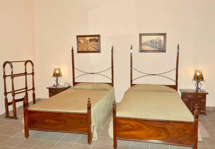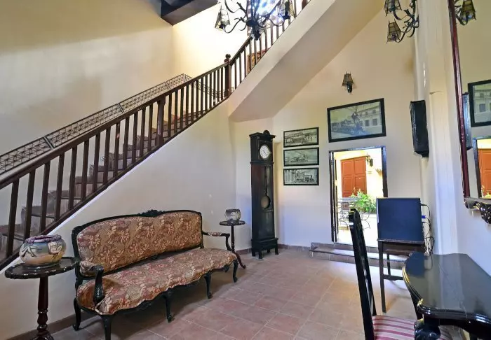 The hotel has ten spacious rooms, decorated in a classic colonial style with wooden furniture and wrought iron lamps. All have air conditioning, Wi-Fi, TV, a radio, a telephone, a safe, a minibar and a hairdryer.