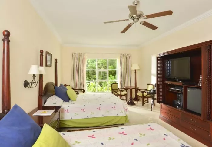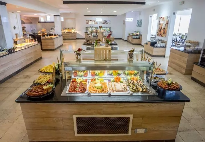 The hotel has 250 rooms and is an all-inclusive resort. All rooms have air conditioning, cable TV, minibar, safe, ironing facilities and a kettle for making coffee/tea. The rooms either have a terrace or a balcony. The rooms overlook the lush garden, but can be upgraded to a sea view or a view of the pool for an additional charge.