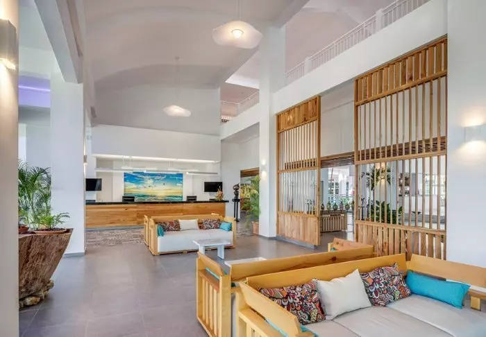 There are 393 rooms at the hotel, all of which are decorated in light colours. They are equipped with air conditioning, ceiling fan, TV, safety box and private balcony while boasting spectacular views of either the garden, the pool or the sea, which are all on the doorstep.