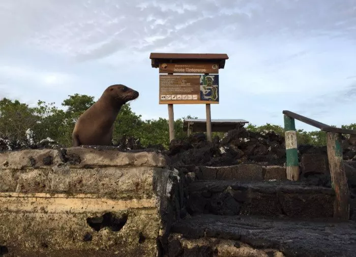 You will be picked up from your hotel in Puerto Villamil and driven to the harbour, from which you will sail out to Las Tintoreras, which are not far from Puerto Villamil. You go ashore on one of the islets, where a short, easy walk of around 15 minutes takes you to a lagoon that is home to newborn sea lions and whitetip reef sharks. Marine iguanas are almost piled up on the rocks.