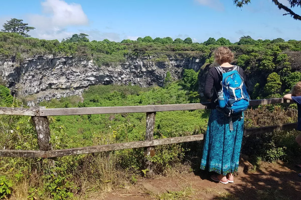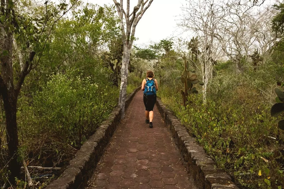 A popular walk on the island heads out to the enormous shield volcano, Sierra Negra. The volcano is 1,124 metres high and has a crater with a diameter of more than 9.5 km.