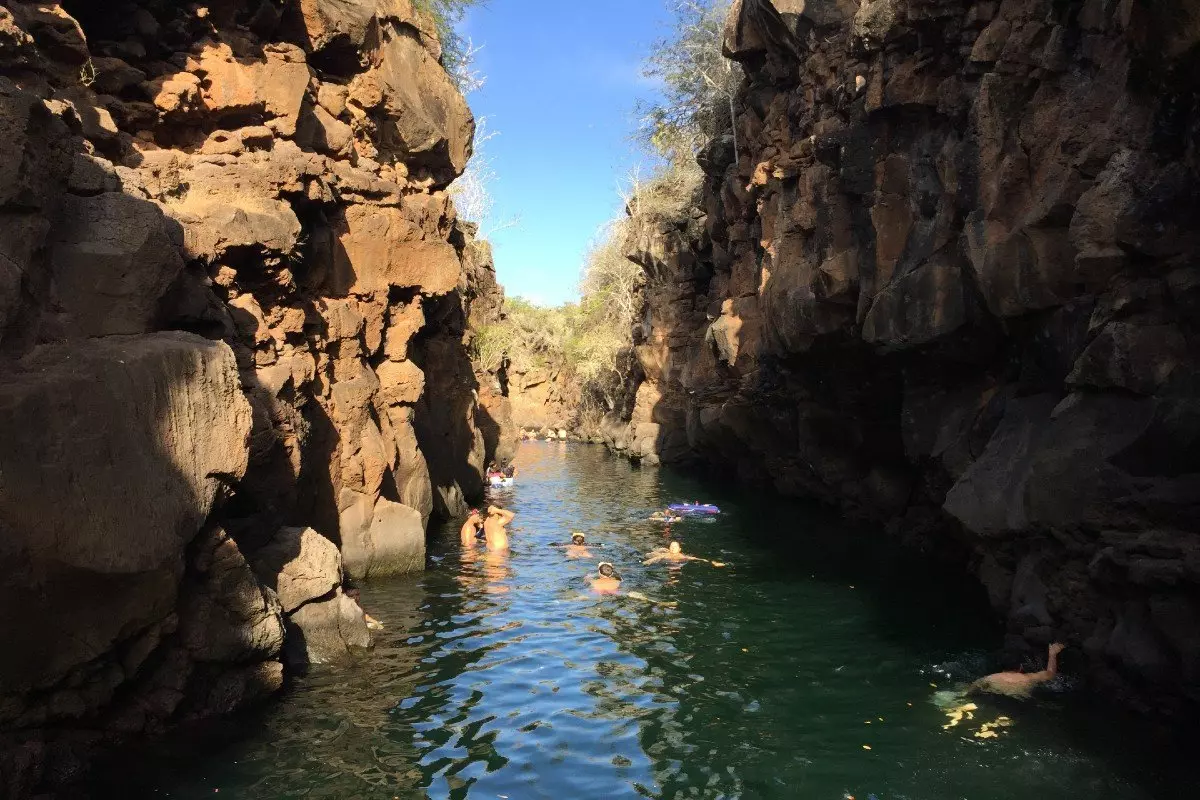 Another excursion option from Puerto Ayora is Las Grietas, which is a deep, elongated “water hole” in an earth fracture where you can swim and snorkel. From Puerto Ayora, you take a taxi boat (roughly 1 USD) to Angermeyer Point, which is around 700 metres from Las Grietas along a small bumpy path, so remember to wear good walking shoes. This is a destination popular with the locals at the weekend.