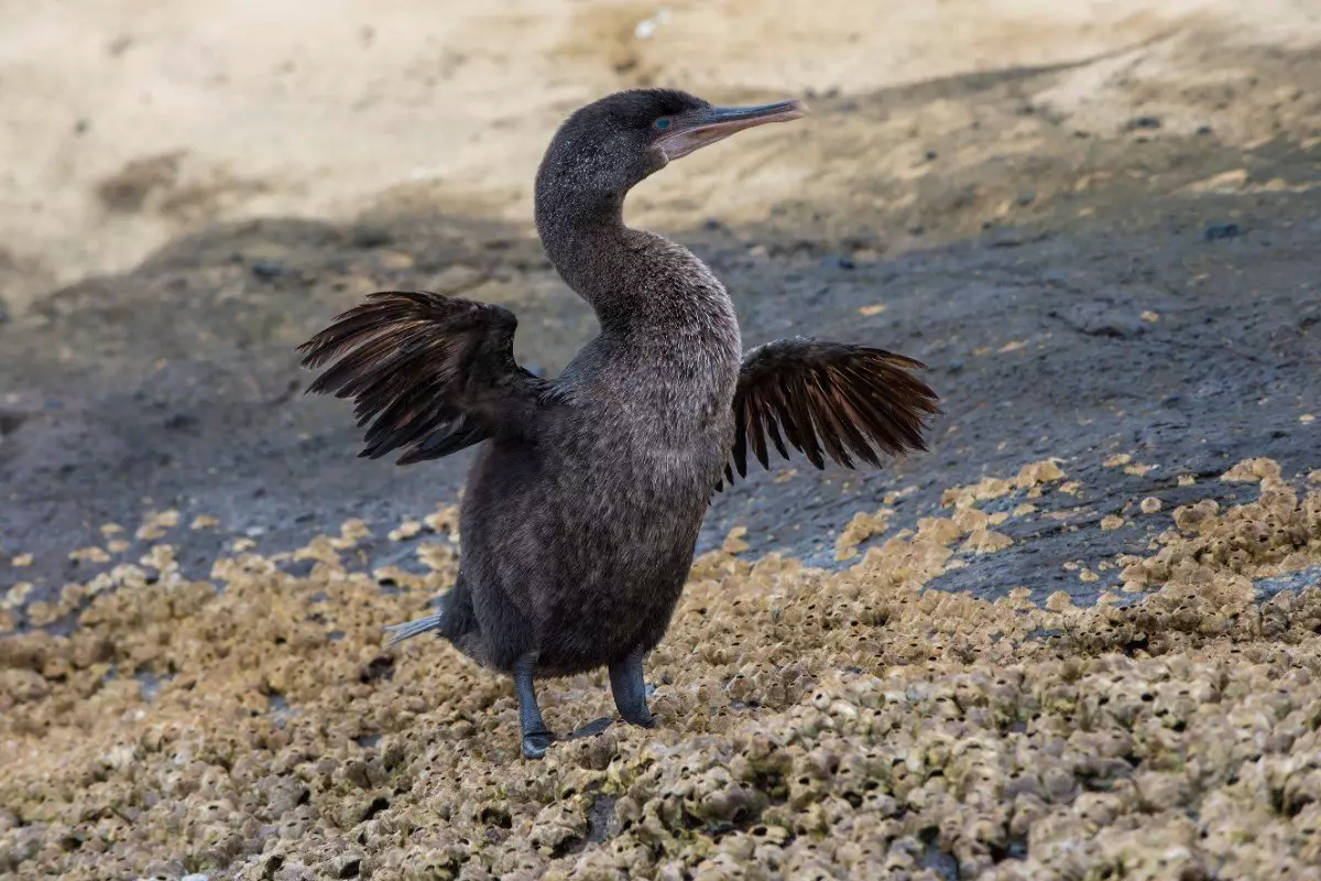 On the island, you can also see a large population of the magnificent, colourful land iguana, the Galapagos tortoise (June – September) and the Galapagos cormorant. The Galapagos cormorant is endemic to the Galapagos Islands and is unique for its inability to fly. In fact, its wings are just a third of the size they should be for such a big bird, making it impossible for them to fly.