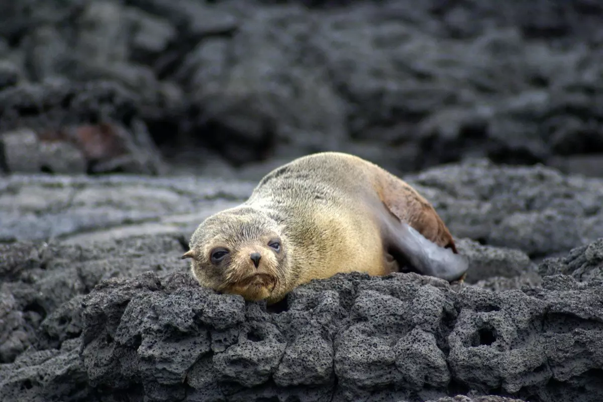 Many marine iguanas and sea lions can be found on the island as well, and it is one of few places in Galapagos where you may encounter the Galapagos fur seal.