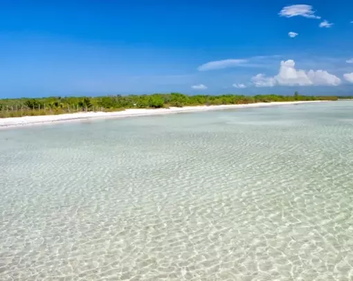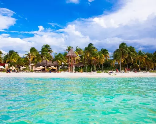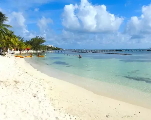 Isla Mujeres is renowned for its charming island lifestyle, white sandy beaches, and the crystal-clear Caribbean sea. The shallow waters and gentle waves make it an ideal spot for families.