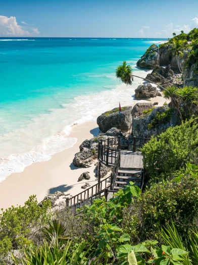 Your journey concludes in Playa del Carmen, where you can unwind beside the Caribbean Sea, stroll along powdery white sands, and soak up all the experiences from your tour.
