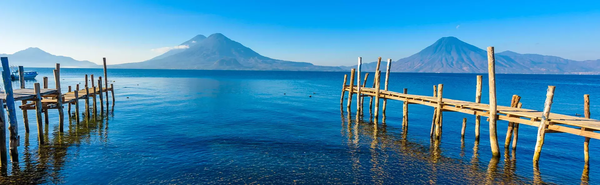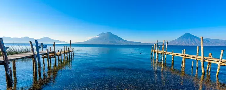 From here, you’ll travel up into the highlands to the picturesque town of Panajachel, where you’ll set sail on the magical Lake Atitlán, surrounded by volcanoes and traditional Maya villages.