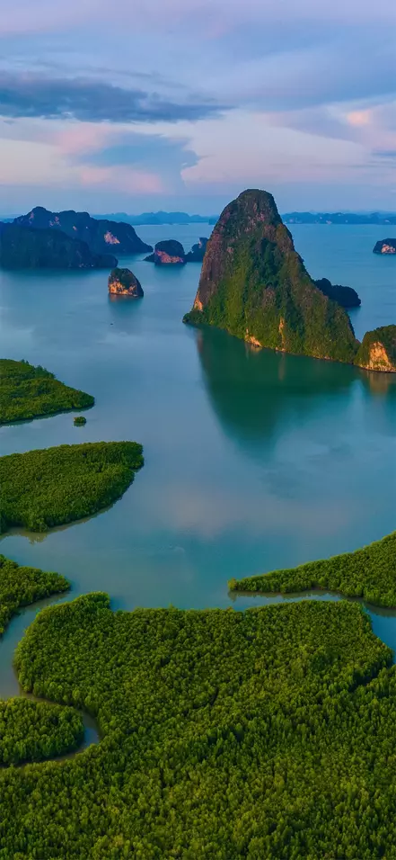 The island is located in southwest Thailand, between Phuket and Krabi, offering tranquil beaches, rubber plantations, and traditional fishing villages where you can intimately experience local life.