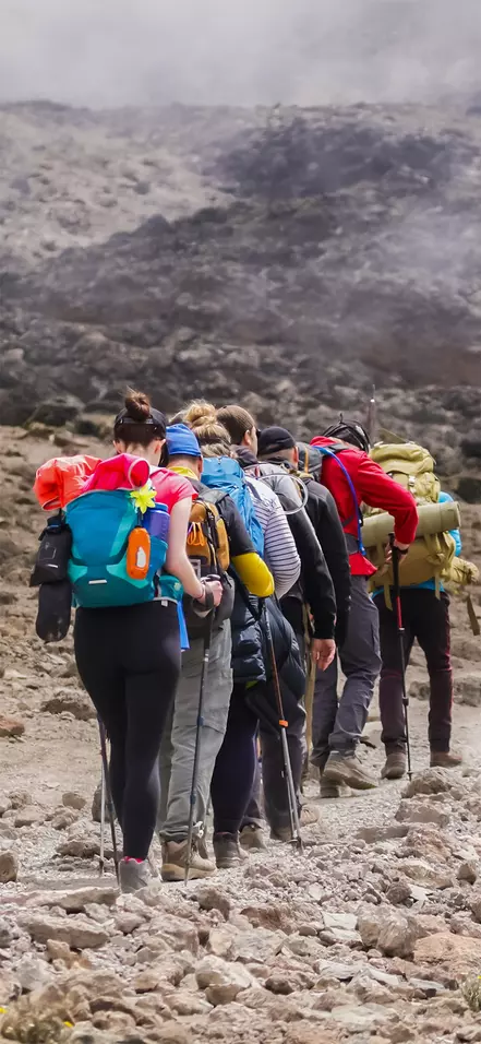 The actual ascent of Kilimanjaro is actually a trek and rather real mountain climbing. This means that the climb does not involve scaling steep rock faces, but walking on paths and across rock formations.