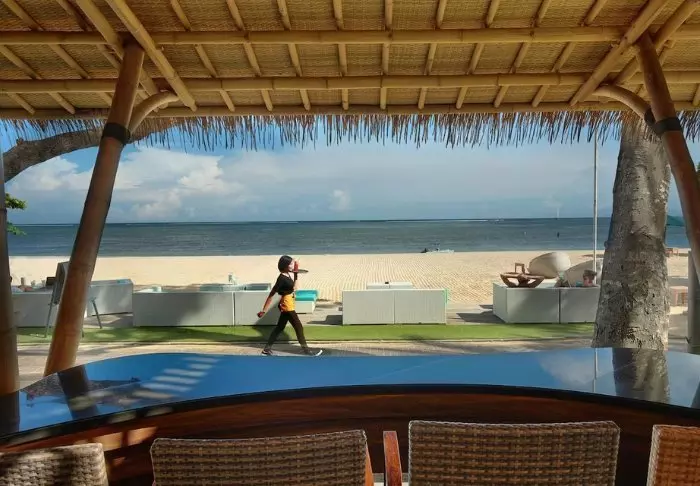 Sun loungers and parasols are available free of charge on the beach, allowing you to lie down and relax in the Indonesian heat.