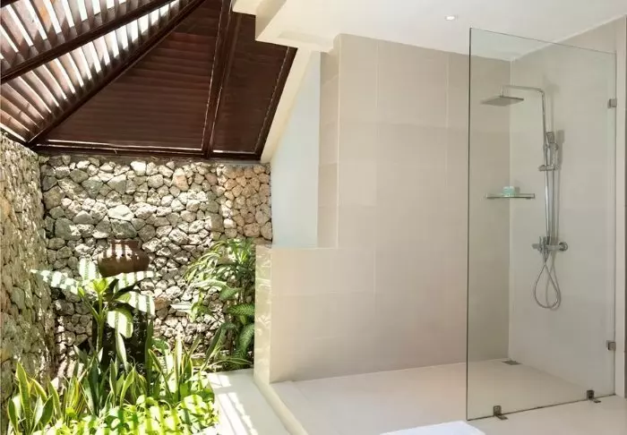 Batu Karang is built in rustic materials that harmonise nicely with the tropical surroundings. The style is modern and traditional, which is also reflected in the resort’s 37 villas and suites, which are attractively appointed with light walls, beautiful stone floors and nice dark wood furniture, which gives it a warm and cosy feel.
