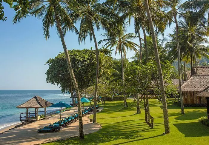 The resort is surrounded by a large tropical garden and is built in traditional Sasak style. All 35 rooms are furnished with beautiful natural materials from floor to ceiling and embellished with beautiful woven fabrics. All offer air conditioning, Wi-Fi, a minibar, free bottled water, a safe, a TV and a DVD player. The bathroom has a rain shower, a hair dryer and complimentary toiletries. From your balcony, you can enjoy the quiet breeze and the view of the garden planted with mango trees and palm trees or the calm waters of the bay.