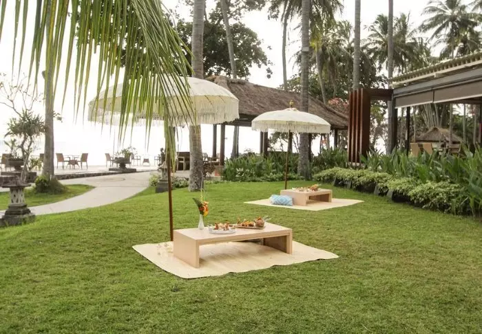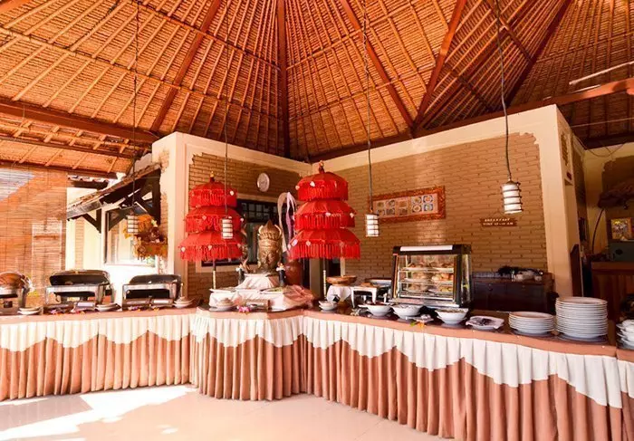 In the restaurant, a team of local chefs and kitchen staff from the nearby village are at the ready to serve Balinese and Indonesian dishes made from local produce and fresh fish provided by the local fishermen. There is also a pleasant sea breeze and a beautiful view of the beach.