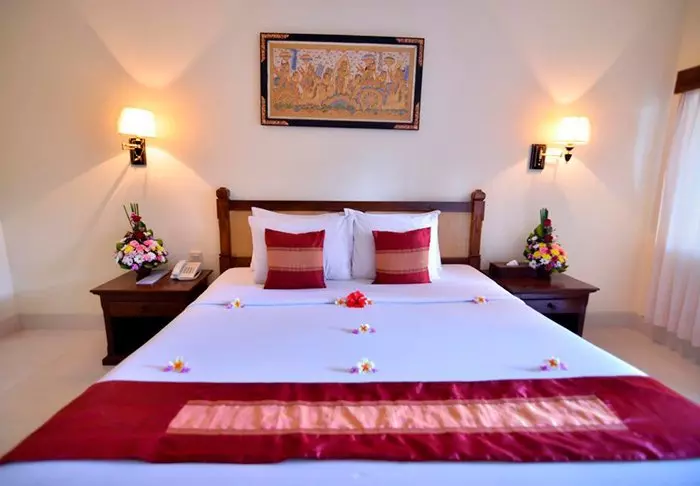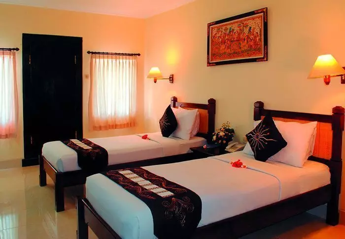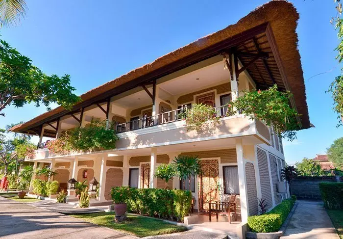 The hotel rooms are simply furnished in Balinese style and equipped with free Wi-Fi, air conditioning, a minibar, a TV, a telephone, tea/coffee making facilities and a bathroom with complimentary toiletries. Relax on your private balcony or terrace and enjoy the peace and quiet of the garden.