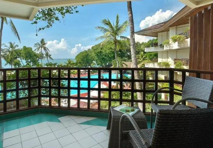 Bintang Flores has 101 rooms, all of which are nicely decorated in warm, light colours, creating a sense of calm in the room. All rooms have Wi-Fi, air conditioning, a minibar and fridge, a safe, a TV, a telephone and an electric kettle so you can make a cup of tea or coffee. Complimentary toiletries, free bottled mineral water and a hair dryer are provided in the bathroom. The rooms also have a French balcony, where you can enjoy the view of the garden and the sea behind the large trees.