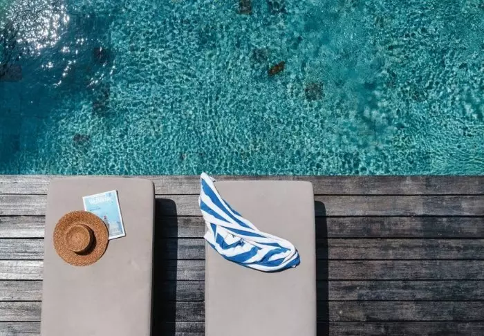 Dotted around the resort are several small oases where you can enjoy the peace and quiet, and relax with a good book. There are also 3 swimming pools with sun loungers and parasols. The first is a freshwater infinity pool for adults only, and then there’s a family pool with a swim-up bar, and lastly a 25-metre-long pool which is suitable for lap swimming.
