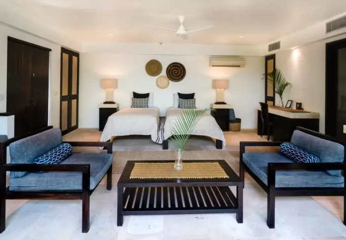 Batu Karang is built in rustic materials that harmonise nicely with the tropical surroundings. The style is modern and traditional, which is also reflected in the resort’s 37 villas and suites, which are attractively appointed with light walls, beautiful stone floors and nice dark wood furniture, which gives it a warm and cosy feel.