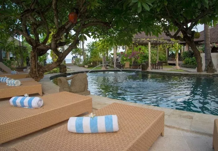 Hidden Paradise Cottages is a charming, tropical hideaway beside the serene beach in Amed. Here, you can enjoy an authentic Balinese atmosphere and discover the area’s fabulous marine life.