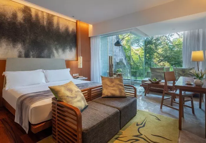 Maya Sanur has 103 bright and well-appointed rooms of at least 57 m2. All rooms have Wi-Fi, air conditioning, a minibar, tea and coffee making facilities, a safe, a TV and a telephone. They are also furnished with a desk and a seating area. The bathroom has both a shower and a bathtub, as well as bathrobes, slippers and toiletries. From your private balcony, you have a view of the lush garden, and you can sit here and read a book or enjoy a cup of Balinese coffee.