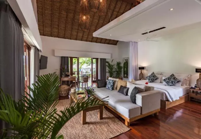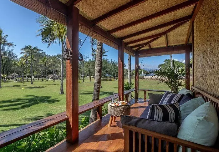 The hotel consists of 18 private bungalows built in a tropical style from natural, sustainable materials. All the bungalows feature elegant canopy beds with mosquito nets as well as Wi-Fi, air conditioning, a mini-bar, tea and coffee facilities as well as a partially open bathroom with a shower, bath robe and hair dryer. On the porch, you can unwind with a good book and enjoy the quiet breeze.