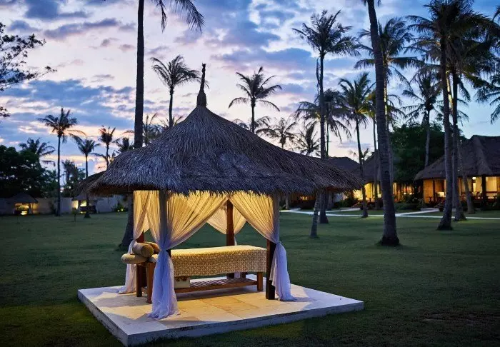 On the southern tip of Gili Trawangan sits the luxurious Pondok Santi Estate Hotel. In 2005, the hotel was built from an old coconut plantation, which today has been transformed into a tropical garden.