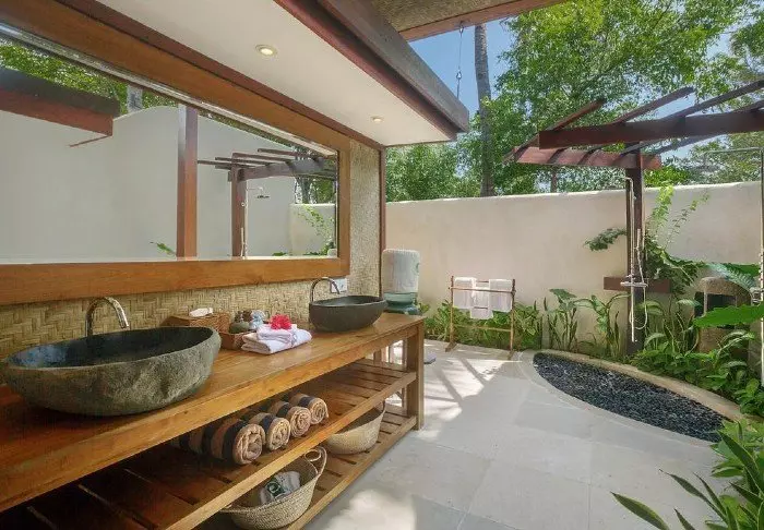Pondok Santi Estate has a private beach with loungers and hammocks, from which you can enjoy the sun and the view of the turquoise water. Excellent snorkelling opportunities with a world of colourful corals and fish await a few meters from the edge of the beach.