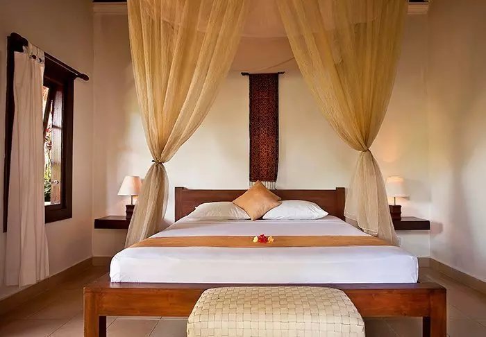 The hotel has a lovely sun terrace with sun loungers, pool and a smaller children’s pool. Relax here and recharge your batteries while admiring the views of the rice fields, tall palm trees, tropical trees and plants.