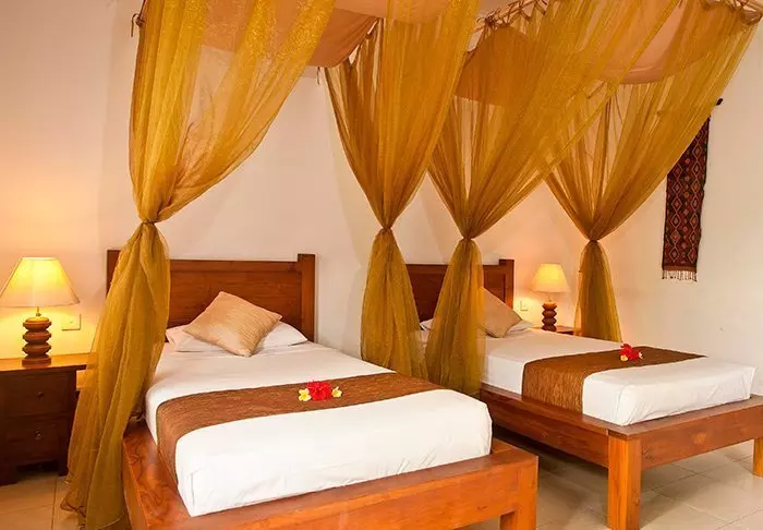 The rooms are spread between 12 bungalows situated like terraces up the green slopes. They are all pleasant and simply appointed and feature tea and coffee making facilities, a fan, a minibar, a safety deposit box, mosquito nets and free Wi-Fi. On your private terrace, you can immerse yourself in a good book and simply enjoy the stillness.