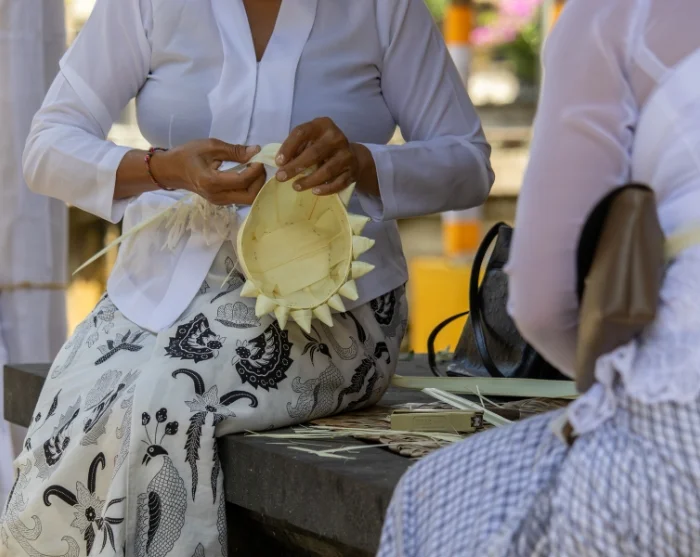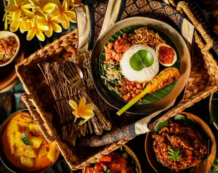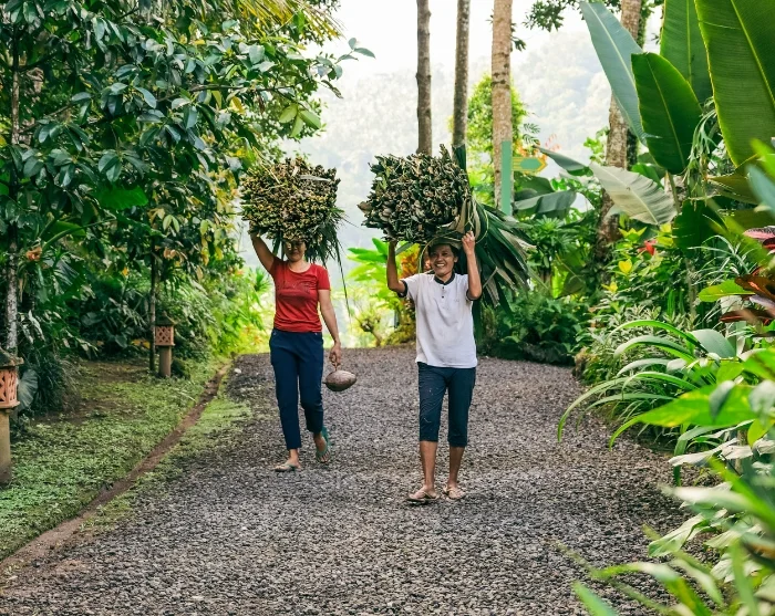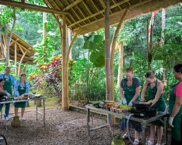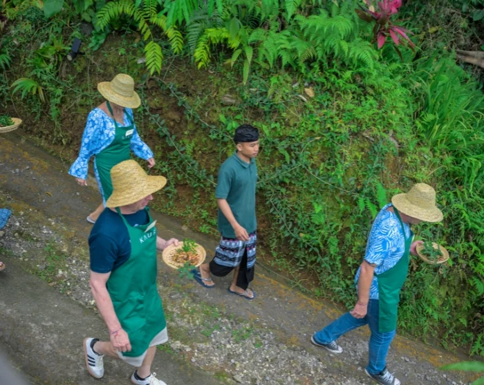 After the walk, you’ll return to Kaura, where you’ll continue the day in the resort’s open kitchen alongside a group of warm, welcoming women from the local village. Here, you’ll learn to prepare classic Balinese dishes using fresh, local produce, while your hosts share their recipes and talk about the role of food in the village community. You’ll gain insight into techniques and flavours passed down through generations, and you’ll feel the joy and pride that comes from cooking together.