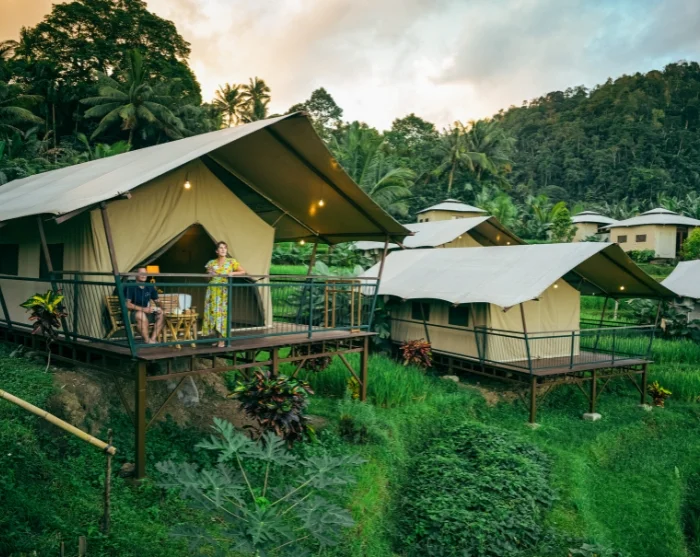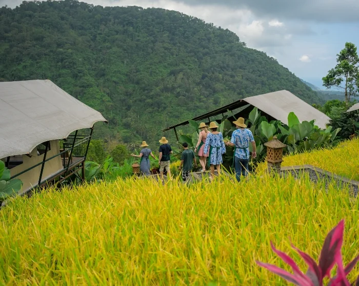From there, the tour continues to Manggis, where you’ll stay at Kaura, a sustainable retreat created by our local partner in collaboration with the village. Here, you’ll experience authentic Balinese village life on a gentle walk, join a cookery class with local women, and enjoy free time to choose between hiking, cycling, or relaxing spa treatments.