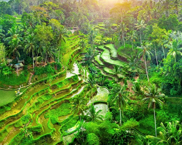 After the ceremony, you’ll enjoy a delicious lunch at a local restaurant before continuing to the famous Tegalalang rice terraces. Here, the landscape opens out in undulating patterns of emerald-green terraces. It’s wonderfully tranquil, and the view across these harmonious terraces is one of the most iconic in all of Bali.