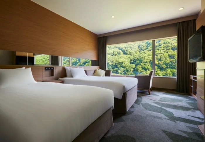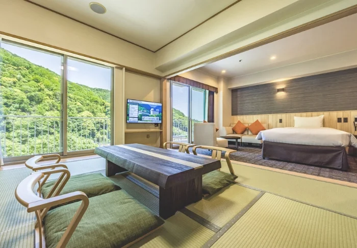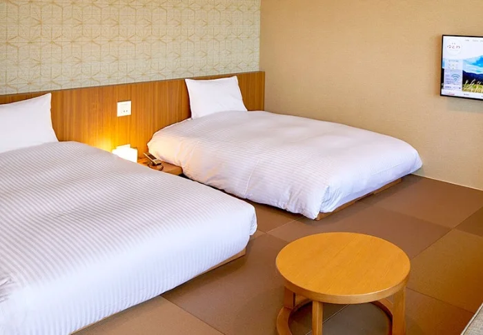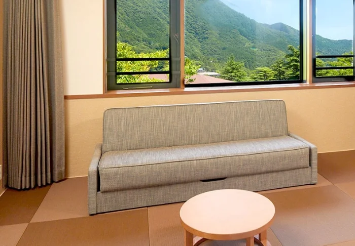 During your stay, you’ll typically be accommodated in a spacious, Japanese-inspired standard room with tatamimat flooring and a traditional futon bed with a luxury mattress. The décor is simple and soothing, with a table and a sofa. Amenities include a TV, WiFi, a minifridge, and a safety box, while the bathroom features a shower, hairdryer, and complimentary toiletries. You can also pick up a yukata in the lobby, where you can collect an onsen set with towels and more.inspired standard room with tatamimat flooring and a traditional futon bed with a luxury mattress. The décor is simple and soothing, with a table and sofa. Amenities include TV, WiFi, a minifridge and a safety box, while the bathroom features a shower, hairdryer and complimentary toiletries. You can also pick up a yukata in the lobby, where you can collect an onsen set with towels and more.‑inspired standard room with tatami‑mat flooring and a traditional futon bed with a luxury mattress. The décor is simple and soothing, with a table and sofa. Amenities include TV, Wi‑Fi, a mini‑fridge and a safety box, while the bathroom features a shower, hairdryer and complimentary toiletries. You can also pick up a yukata in the lobby, where you can collect an onsen set with towels and more.