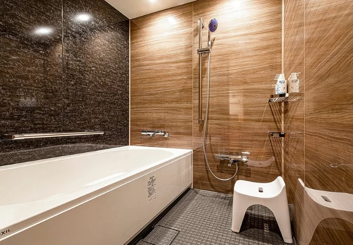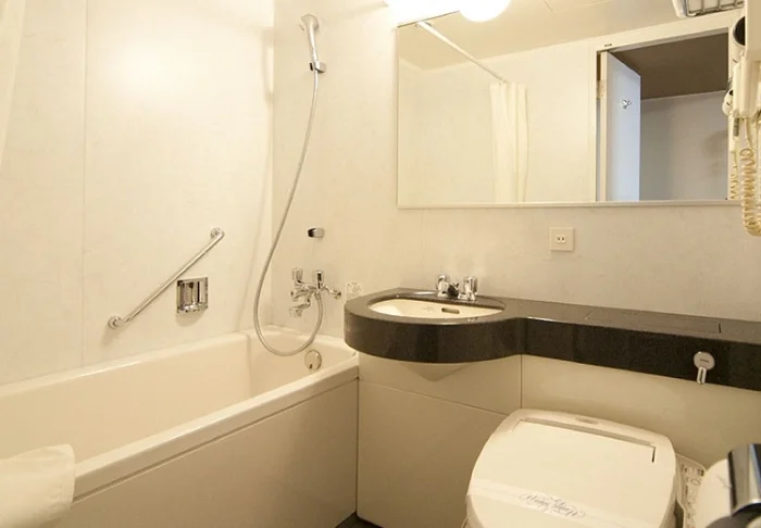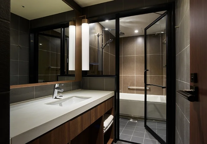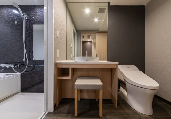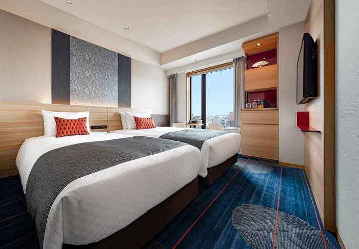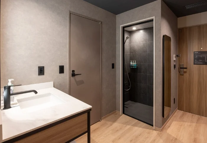 You’ll be staying in a modern and stylish Standard Room, decorated in warm tones with minimalist Japanese touches. The room has everything you need, including Wi-Fi, air conditioning, a mini fridge, a TV, and an electric kettle, so you can start your morning with a freshly brewed cup of tea or coffee. The practical bathroom features a washlet toilet, bathtub with shower, hairdryer, slippers, Japanese pyjamas, and a selection of toiletries.