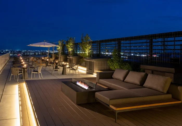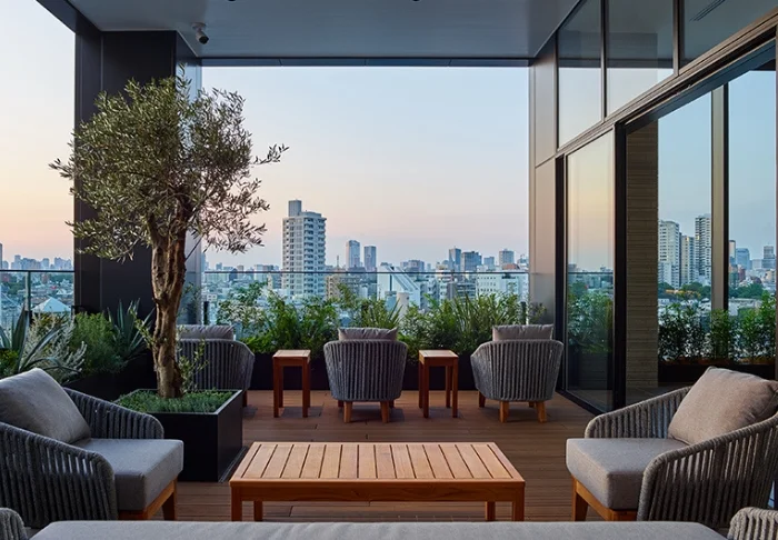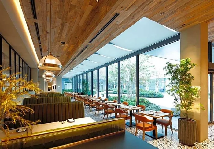 Your stay includes a luxurious breakfast buffet at The Gate House restaurant, where Japanese and Western favourites are prepared using carefully selected local ingredients. You’ll also find a professional barista here, brewing fresh café lattes from newly roasted beans. The restaurant is overseen by the head chef from the acclaimed *L’AS* in Tokyo, ensuring you an exceptional start to the day. If the weather permits, you can even step outside to the restaurant’s stylish rooftop garden and enjoy your meal in the open air.