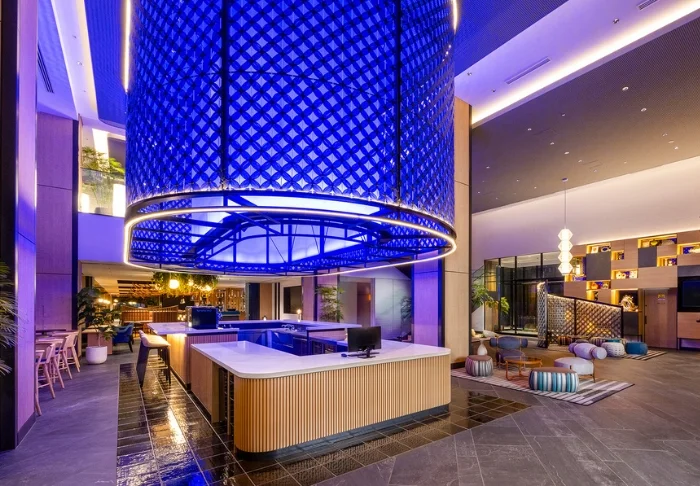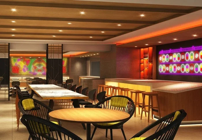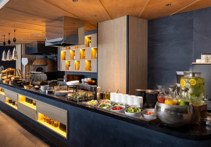 With breakfast included during your stay, you can look forward to a delicious start to the day in the hotel’s restaurant. Here, you’ll find an international buffet featuring hot dishes, freshly squeezed juice, and other tempting options. If you fancy, you can return in the evening, when the restaurant transforms into a laid-back, pub-style hangout with neon lights and a selection of drinks and dishes that reflect the colourful atmosphere.