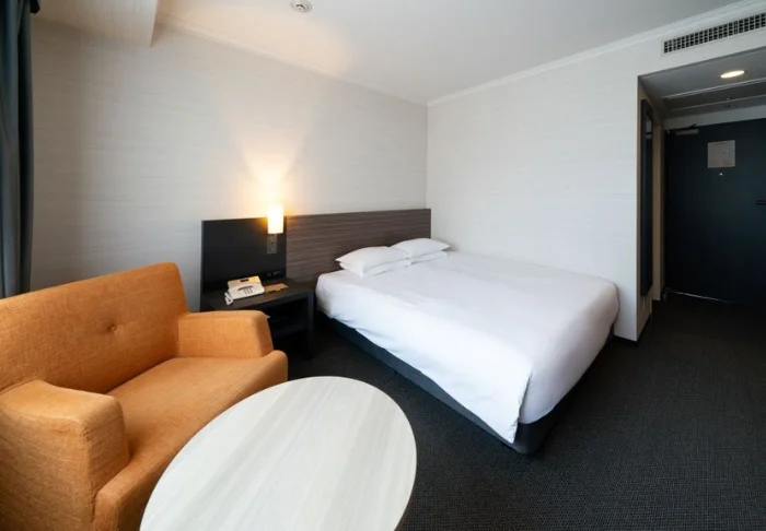 You’ll stay in a standard room featuring bright, comfortable décor and modern facilities. Each room comes with Wi-Fi, air conditioning, a TV, a safety box, a mini fridge, and a kettle for making tea and coffee. You’ll also have access to a filtered water dispenser in the corridor. The beds are designed for comfort, and you can choose between soft and firm pillows for a restful night’s sleep. The bathroom includes a washlet toilet, hairdryer, complimentary toiletries, and a separate shower with a rainfall head.