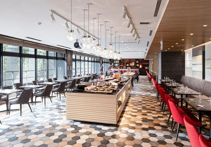 The hotel’s inviting restaurant, with lofty ceilings and large windows, beautifully frames the changing seasons, from spring’s colour palette to autumn’s red foliage. Tasty choices await at the breakfast buffet, with more than 25 different dishes inspired primarily by Japanese cuisine. If you dine here in the evening, Japanese-inspired dishes are served with unlimited drinks (including alcoholic beverages) for 90 minutes.‑inspired dishes are served with unlimited drinks (including alcoholic beverages) for 90 minutes.