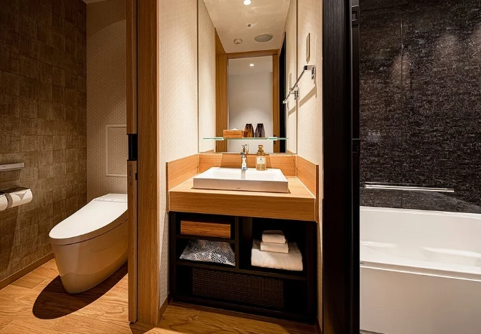 During your stay, you’ll be accommodated in a Standard Room that combines modern comfort with subtle Japanese touches and natural materials. The room features Wi-Fi, a TV, air conditioning, a mini fridge, a safety box, a small sofa with table, and a selection of drinks, including coffee and Japanese green tea. In the bathroom, you’ll find a hairdryer, washlet toilet, bathtub with shower, high-quality bath and skincare products, as well as kimono-style pyjamas and slippers.